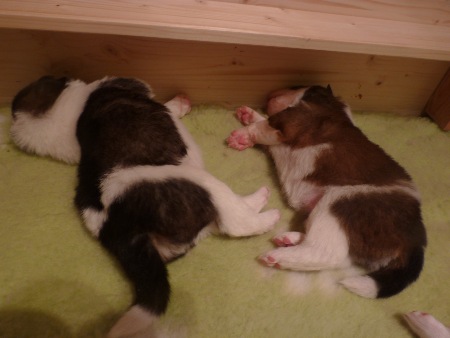 Wieder eine Woche weiter wurden die Welpen von der Deckrüdenbesitzerin und ihrer Mutter kräftig geknuddelt und gekuschelt. Die Anfahrt von über 2 Stunden hat sich in diese Richtung genau so toll angefühlt wie im Januar zur "Hochzeit " von Juco und Bella. Am Schluss mussten die großen Taschen genau kontrolliert werden dass nicht doch ein Welpe frühzeitig das Haus verlässt;-). Voller Tatendrang und Energie entwickeln sich die alle weiter und machen viel Freude.